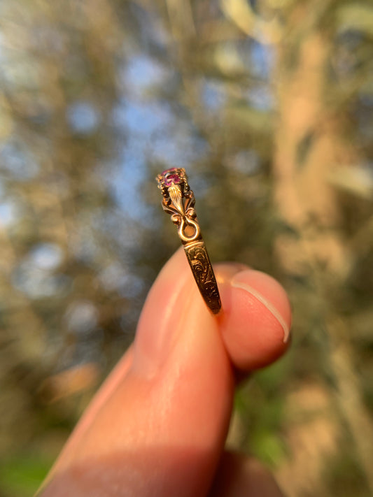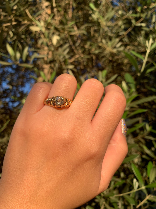 18k "Secret garden" old european cut diamond ring in yellow gold (antique, only one available)