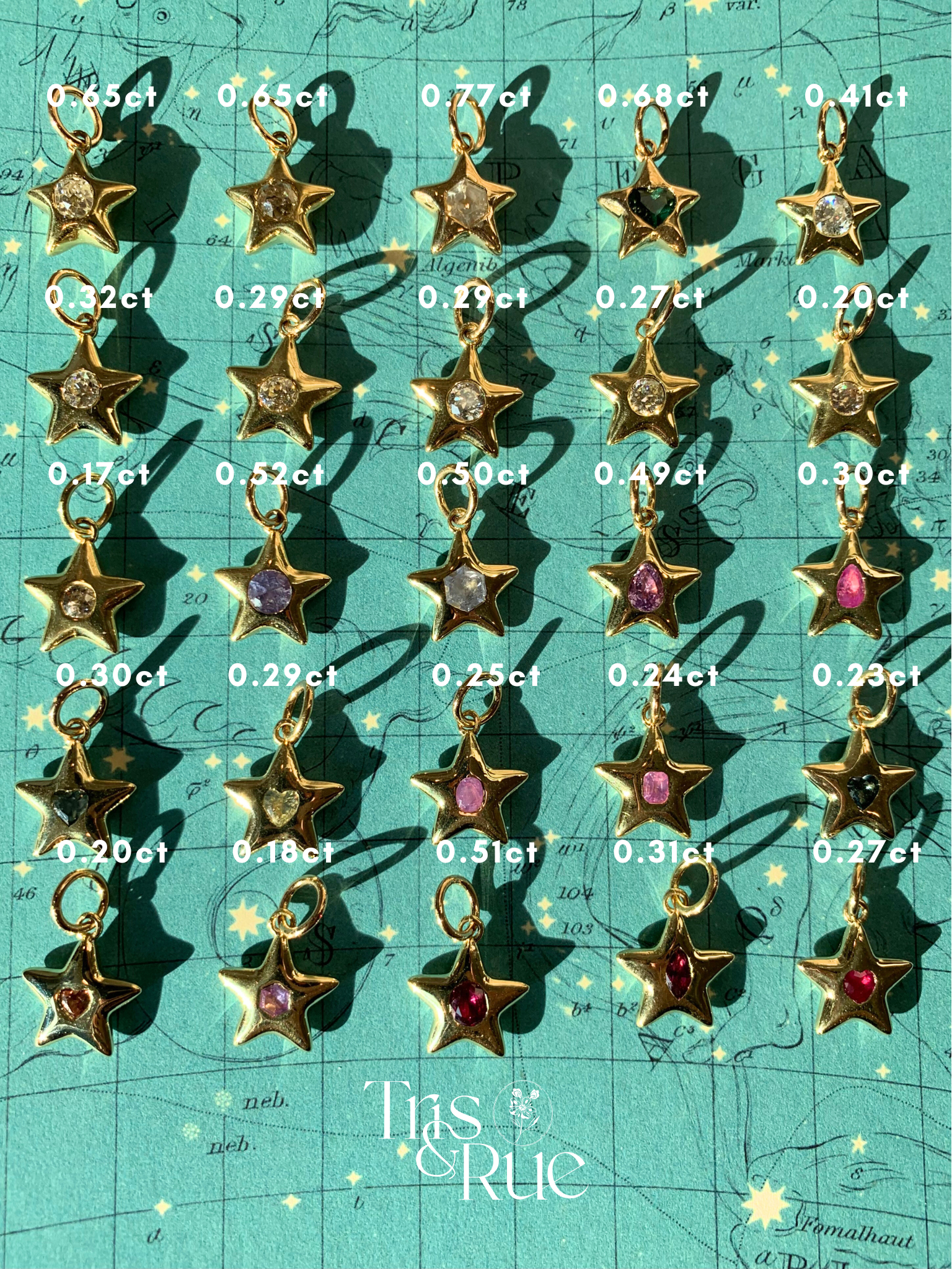 The individual photos are intended to show the stone to star proportion. Stones may appear darker in photos.