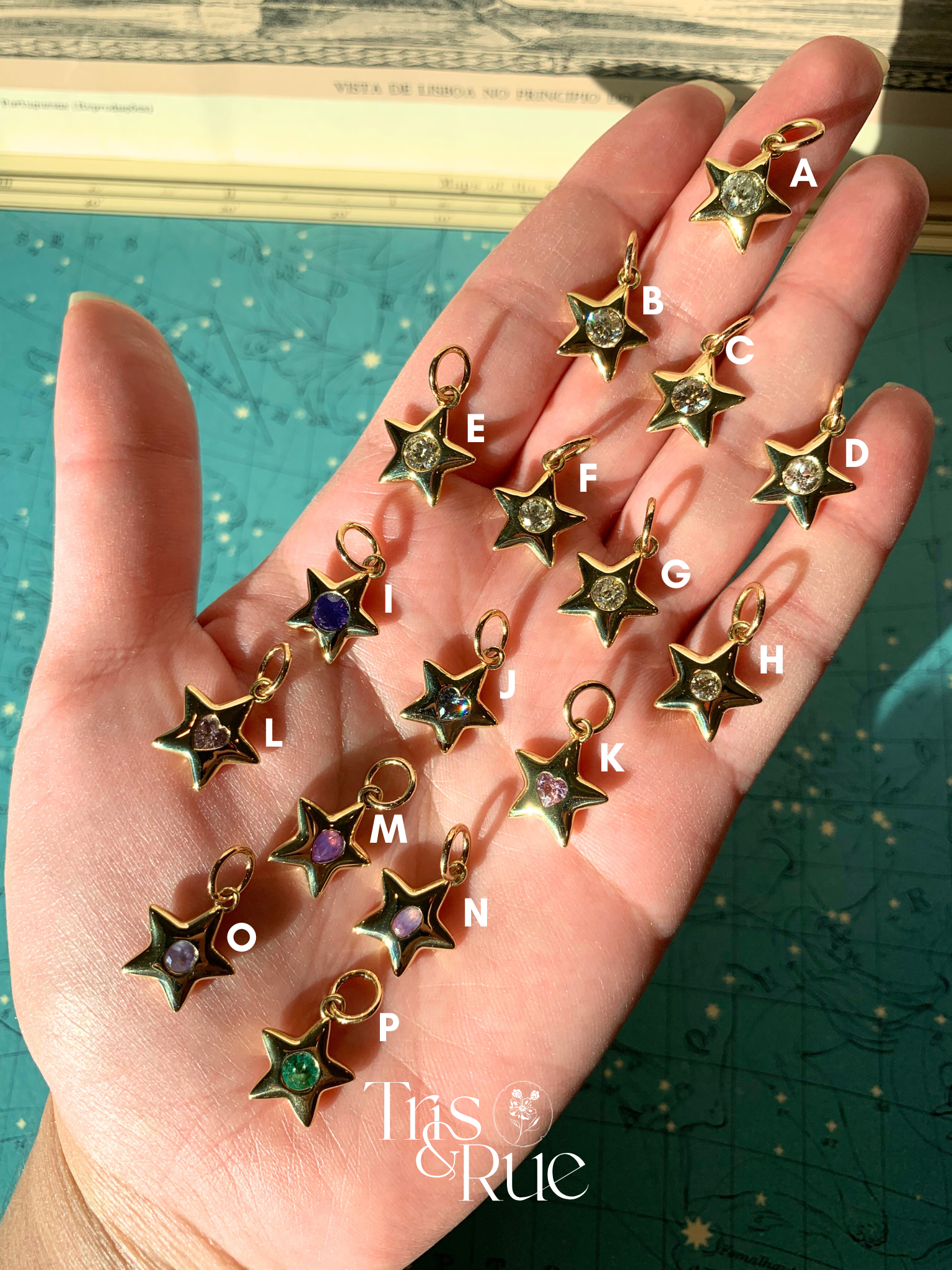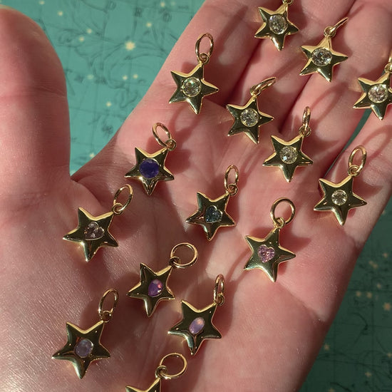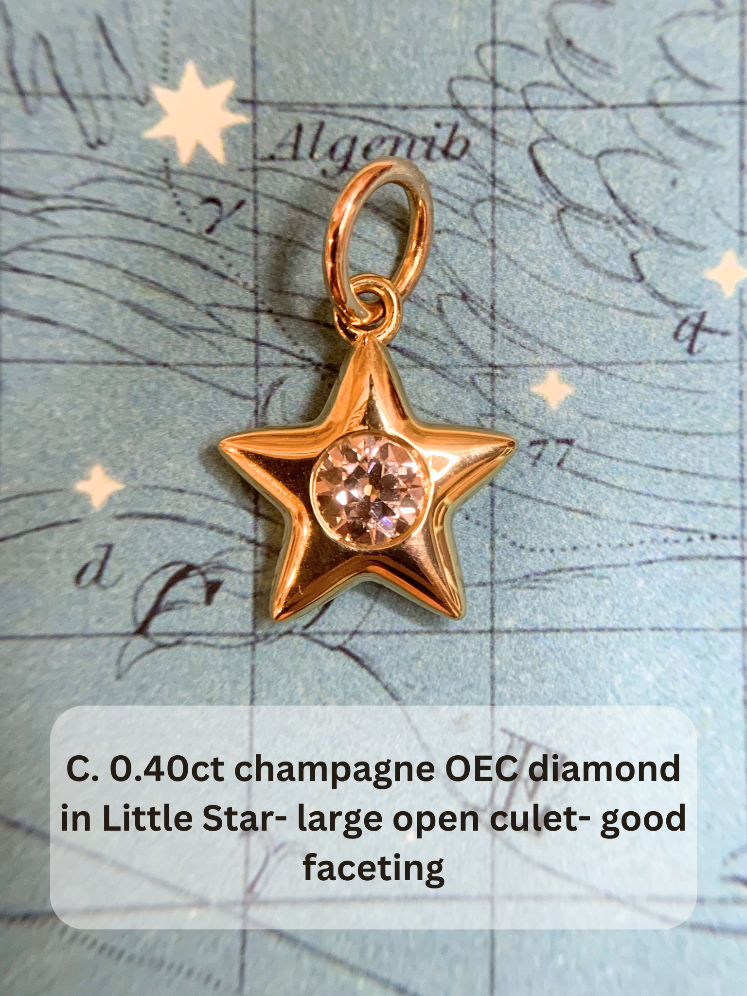 The Little Star© charms in volume 14 are each flush set with natural old cut diamonds, natural sapphires, and a natural emerald. The natural gems we use are untreated unless otherwise stated. They are usually more vibrant than they appear in photos. Inclusions have been considered in the pricing of each star. Please note that reclaimed gemstones may have minor surface wear, adding to the story of each Little Star©.