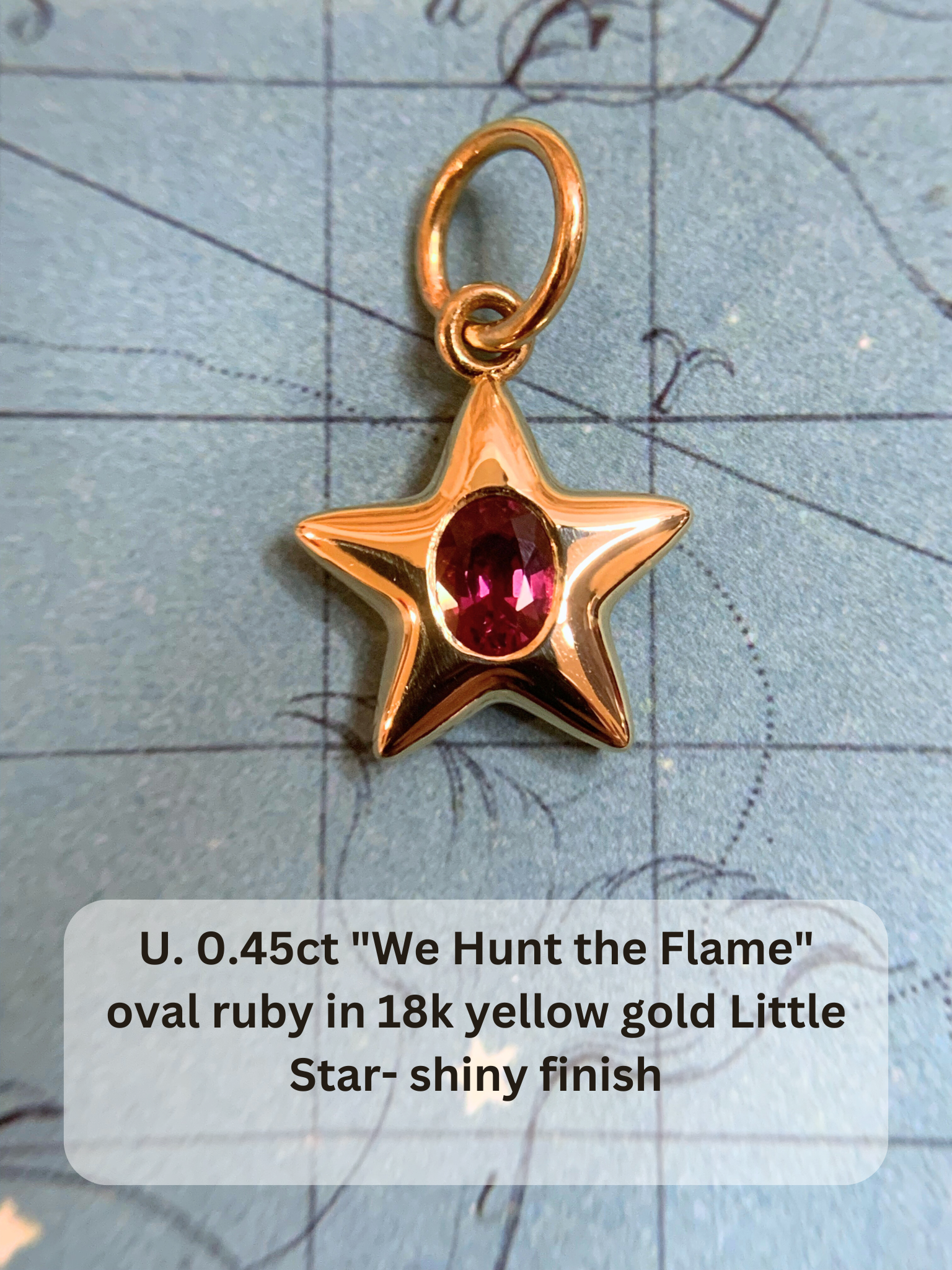 The Little Stars© in volume 17 are each flush set with natural old cut diamonds, natural sapphires, natural rubies, a natural emerald and natural garnets. The natural gems we use are untreated unless otherwise stated. The rubies in this batch are reclaimed, priced as routine heat treated. Inclusions have been considered in the pricing of each star. Please note that reclaimed gemstones may have minor surface wear, adding to the story of each Little Star©.