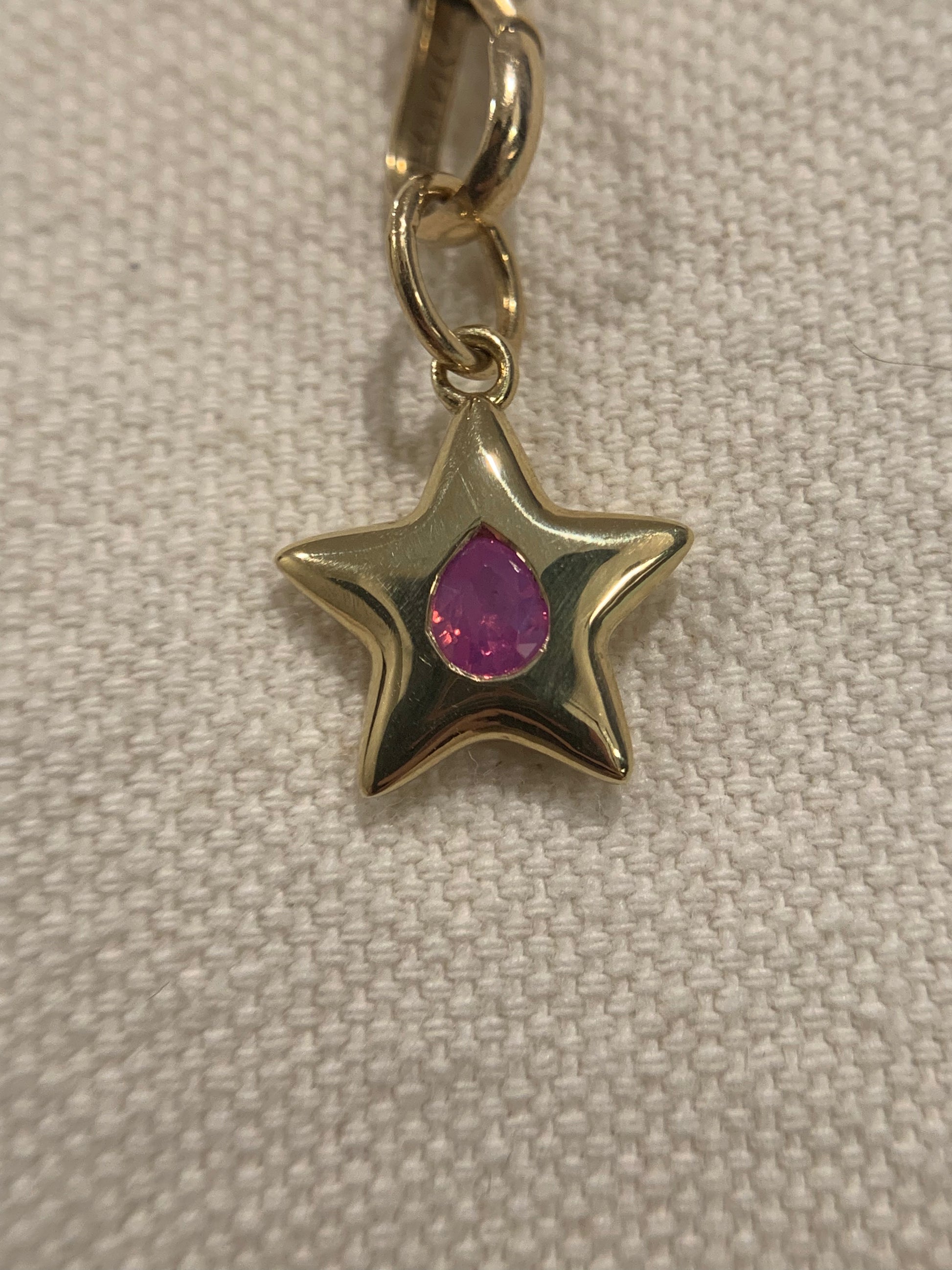 Kaylie custom order - Star H. 0.38ct opalescent "Candy pink" pear fae sapphire in a shiny finish 18k yellow gold Little Star