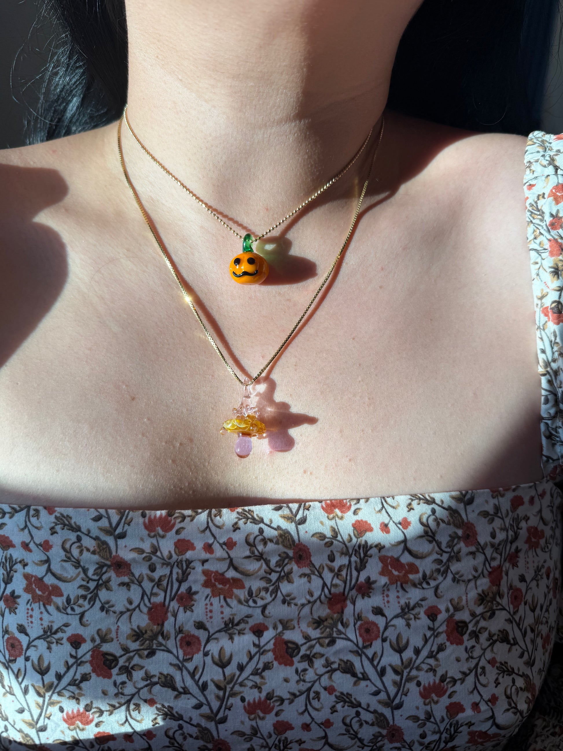 These Mystical Mushrooms are your little buddies to keep you company this autumn and to add whimsy to your neck stacks! 🍄 Each mushroom charm is handmade lampwork glass art and one of a kind. Even if you get more than one, no two have the same personality. 🥹 They are so beautiful to behold, especially in person!