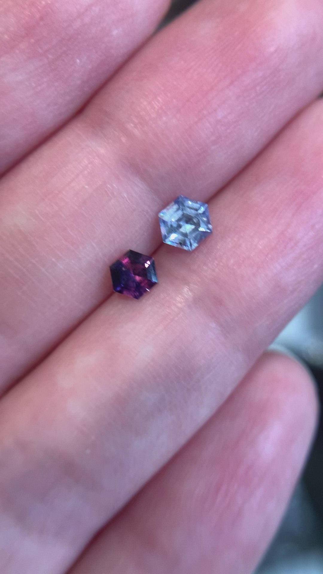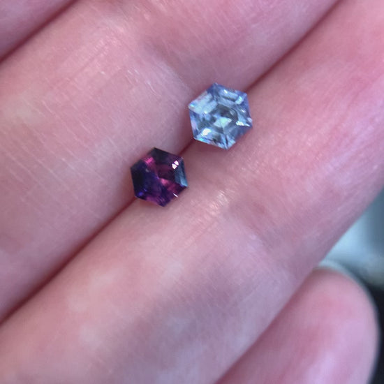 Ren custom order - Set of Star E. 0.50ct "Arwen" bicolor grayish blue to sky blue Hex sapphire in a shiny finish 18k yellow gold Little Star & Star H. 0.34ct "Darth" bicolor pink to violet Hex sapphire in a shiny finish 18k yellow gold Little Star