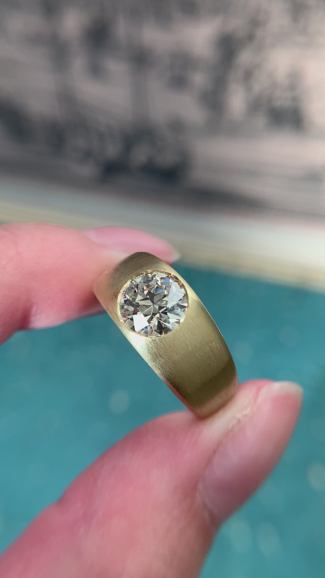 "The dreamer" 18k yellow gold flush-set old european transitional diamond ring for Katie - remaining balance